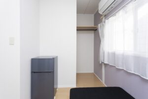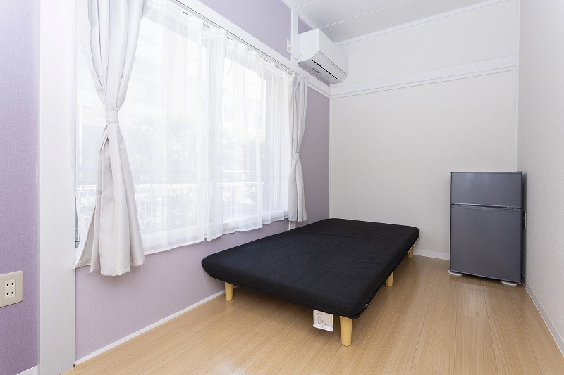 ◆備品:ベッド、エアコン、机、椅子、冷蔵庫、電源、収納